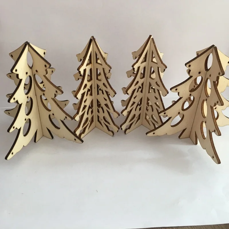 2pcs Wooden Christmas Tree Indoor Table Top Wooden Christmas
