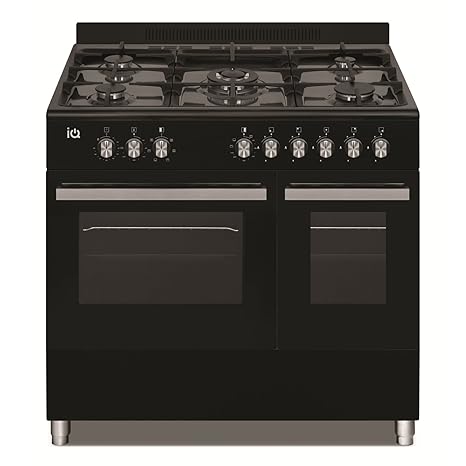 Electriq 90cm Dual Fuel Double Oven Range Cooker Black