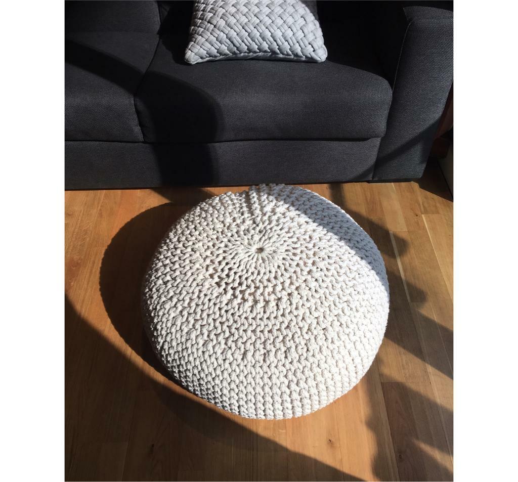 Details About Large 100 Cotton Knitted Pouffe Chunky Knit 50cm Moroccan Style Ottoman Stool