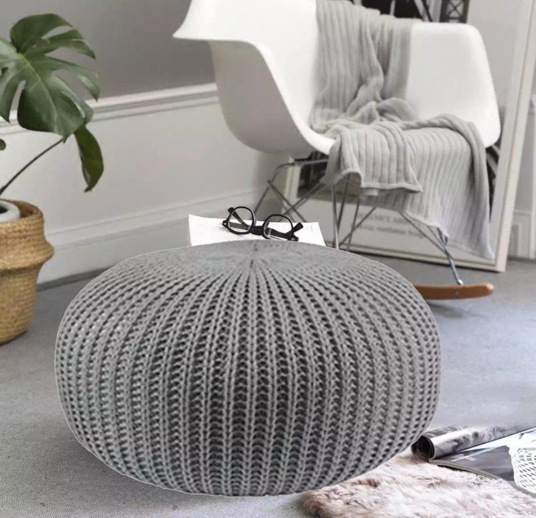 Details About Large 60cm Knitted Pouffe Chunky Knit Foot